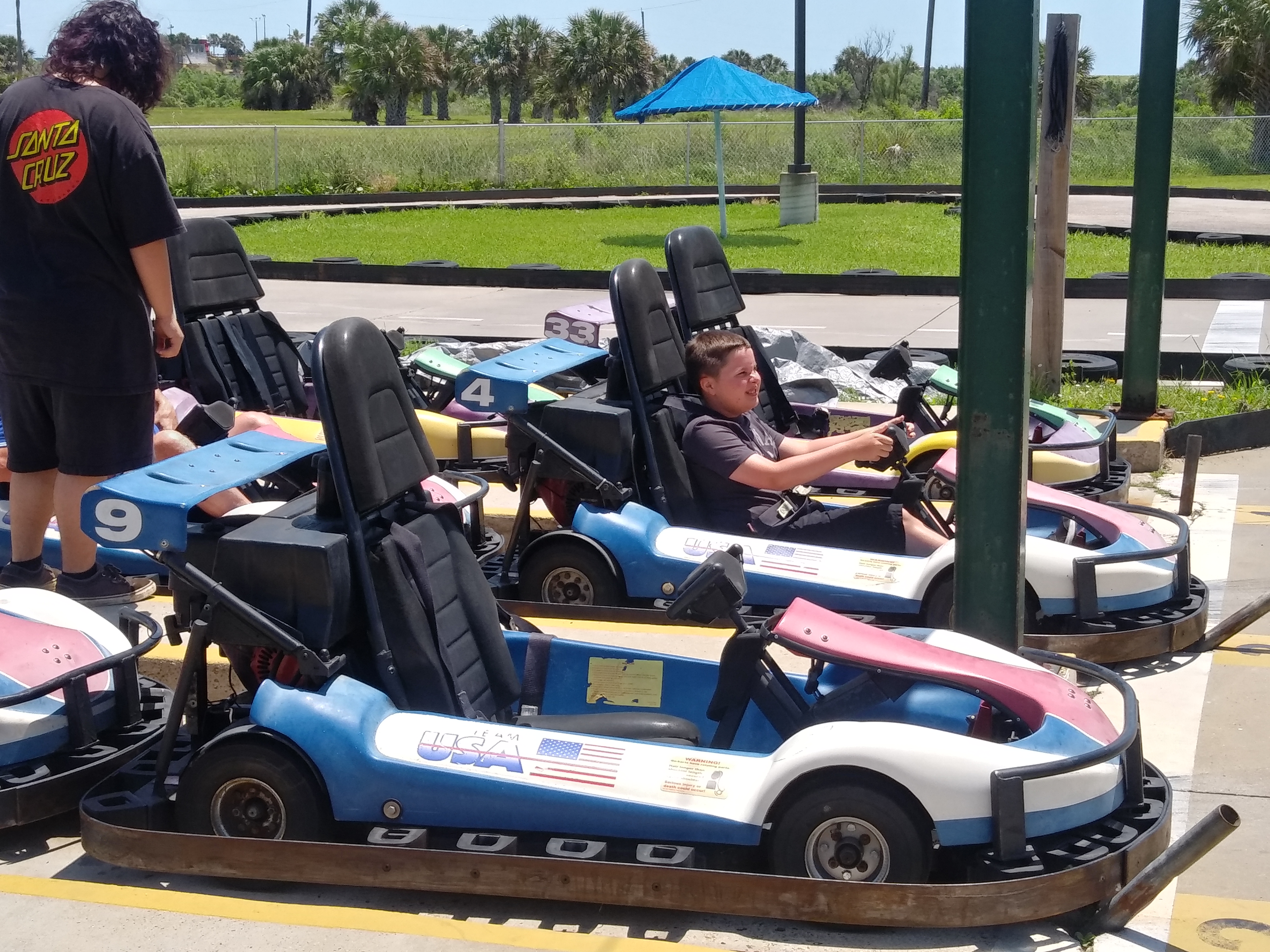 After lunch we headed down the seawall to a place that has Go Karts. Taylor had never driven one before and was excited to try it